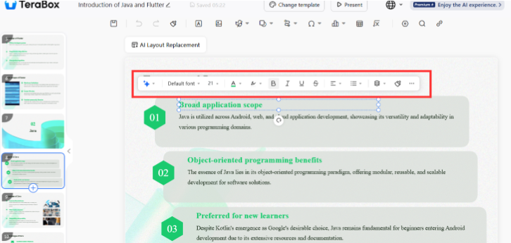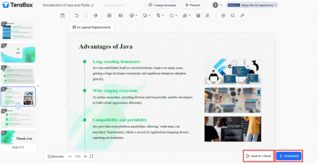 Allow TeraBox to analyze the content and generate presentations. It might consume a few minutes. Look at the slides carefully. You can use the editing feature to tailor the content and add a personalized touch.